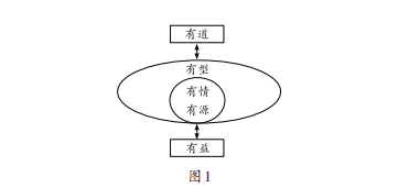 “五有”课堂从教育观、学生观、教师观、教法观、教学过程观五个角度出发,分别关注价值观、课堂生态、教学内容、教学结构、教学效益,意为“有道、有情、有源、有型、有益”。如图1所示,“五有”课堂的五个要素彼此联系、相互支撑、有机统一,具有递进与互补关系。在纵向层面,从“有道”的价值引领,到“有情”“有源”的课堂环境与内容构建,再通过“有型”的结构落地,最终实现“有益”的效益闭环。在横向层面,“有情”“有源”“有型”分别从情感、内容和设计维度支撑“有道”的价值观,而“有益”则是前四个层面的最终落脚点与追求目标。