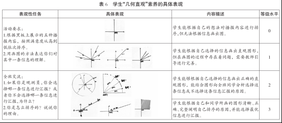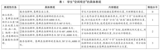 表现性评价的评分规则是描述学生达成不同学习水平的各种表现,是对学生在学习过程中的行为、作品表现进行评价的一种评分量表,需要聚焦核心素养的重要维度,且能描述学生表现的真正差异。笔者结合前测学生的具体表现以及围绕空间观念和几何直观这两个主要的核心素养,制订具体的评分规则: